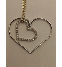 Boucles d'oreilles clous et pendentif double coeur avec oxydes