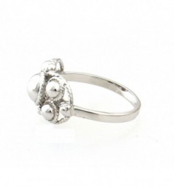 BAGUE ARGENT 925 RHODIE MOTIF FLEUR AVEC PIERRE MILKY ROSE T50