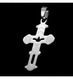 Pendentifs en acier inoxydable de la Croix-, couleur originale, 40x26x1mm,