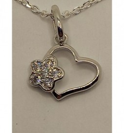 boucles d'oreilles et pendentifs coeur ajouré avec fleur en oxydes de zirconium