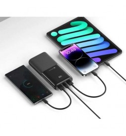 Prix 32,99 €? 20 000 mAh / 74 Wh _ plusieurs recharges mobiles ? 20 W max : USB_C PD + QC 3.0 USB_A ? 3 ports : 1× USB_C + 2× USB_A ? Charge jusqu'à 3 appareils simultanément ? Indicateur LED pour niveau de batterie ? Format fin et homologué pour avion