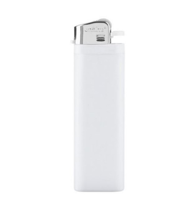 Briquet jetable avec corps opaque. Mécanisme à friction et flamme réglable. Capot métallique. Sécurité enfants selon la norme EN13869