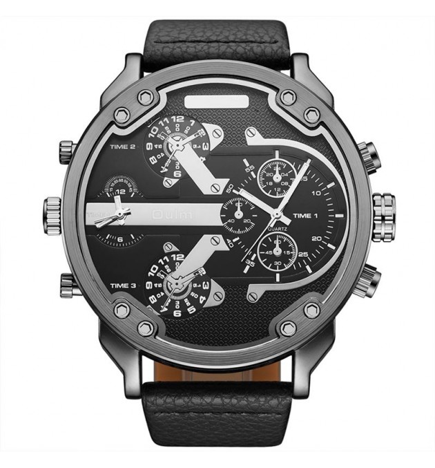 Montre Oulm Men Jewelry, cuir PU, avec cadran en alliage de zinc et verre, placage, réglable et pour homme, 56x56x14mm, 23mm, Longueur:Environ 10.2 pouce,