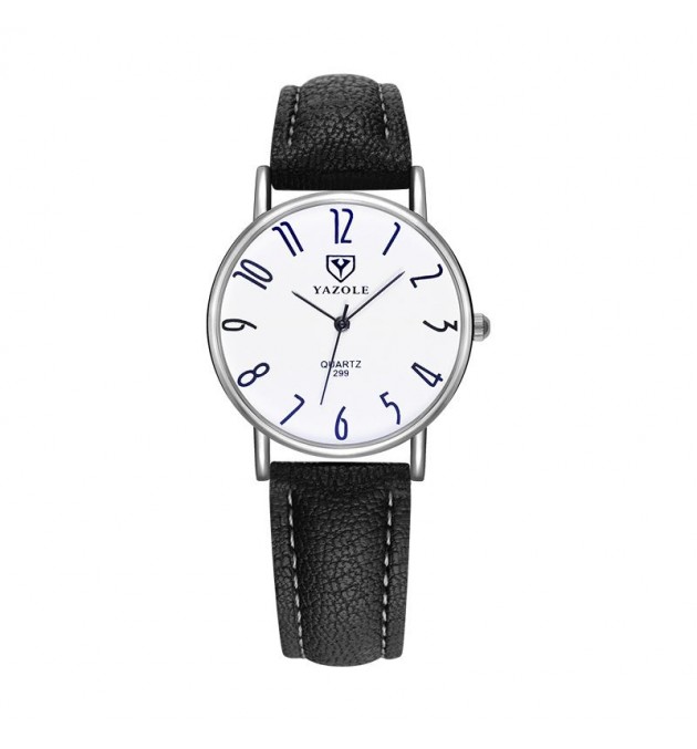 MONTRE YAZOLE 01 BRACELET NOIR CADRAN BLANC