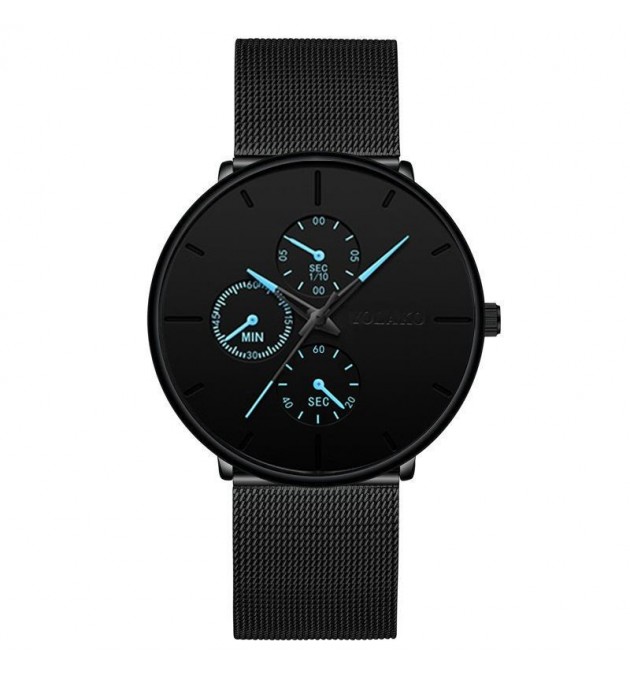 MONTRE JIANUO NOIR CADRAN NOIR ET BLEU