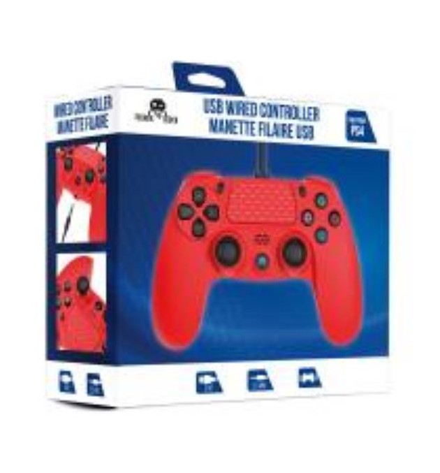 MANETTE FILAIRE ROUGE POUR PS4 AVEC CABLE DE 3M