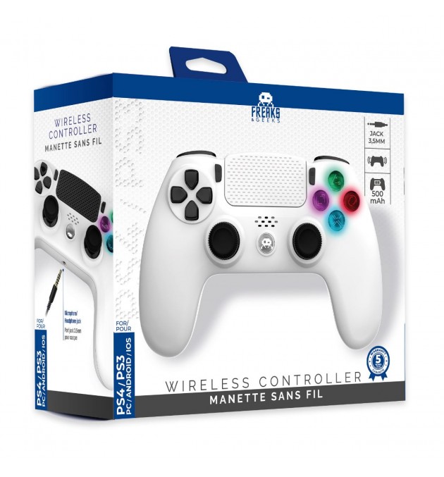 MANETTE SANS FIL FREAKS AND GEEKS PS4 /PS3/PC /ANDROID /IOS BLANCHE JACK ET BOUTONS LUMINEUX
