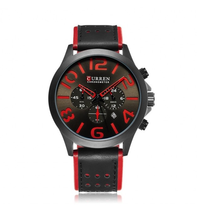 MONTRE CURREN 8244 NOIR CADRAN NOIR ET ROUGE