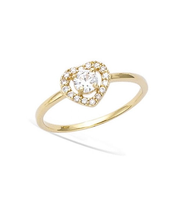 T58 BAGUE EN PLAQUE OR SOLITAIRE COEUR TAILLE 58