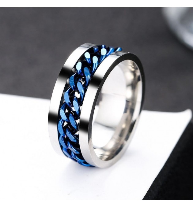 BAGUE ACIER CHAINE BLEU AU MILIEU TAILLE 74