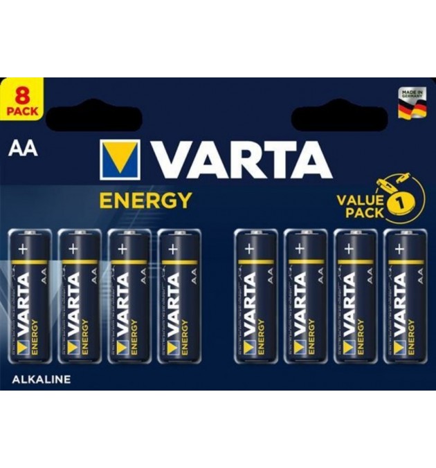 VARTA Pack de 8 piles alcalines Energy AA (LR06) 1,5V - Convient pour des applications quotidiennes - Idéales pour les jeux, horloges, lampes de poche, télécommandes