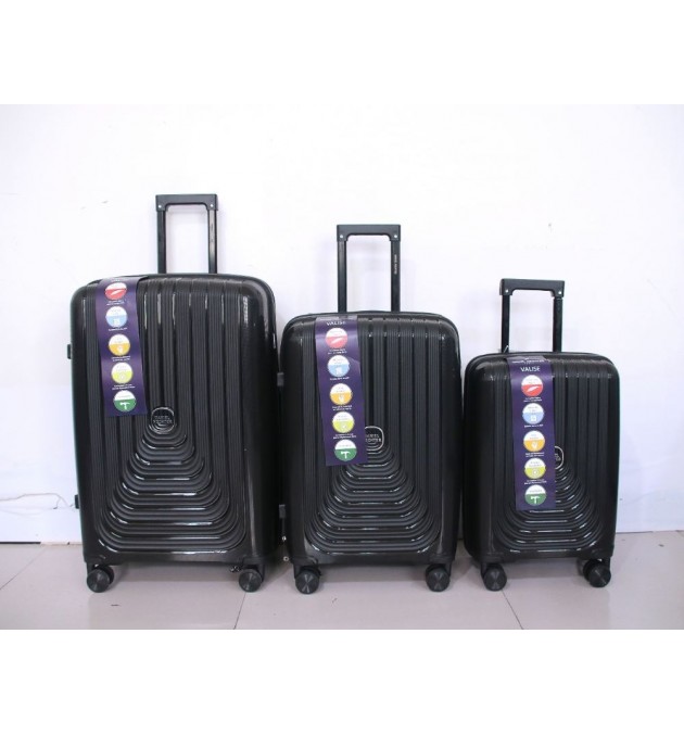 Caractéristiques : Matière : POLYPROPYLENE  Volume set : 196 L Poids : 10 kg Roulettes multidirectionnelles à 360 degrés Doublure en polyester résistant à l'usure Plusieurs compartiments et poches intérieures Serrure à combinaison TSA Poignées télescopiques réglables en hauteur et poignées de transport latérales