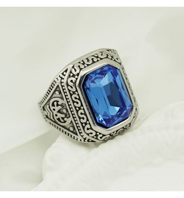 BAGUE ACIER ZIGZAG PIERRE BLEU TAILLE 70
