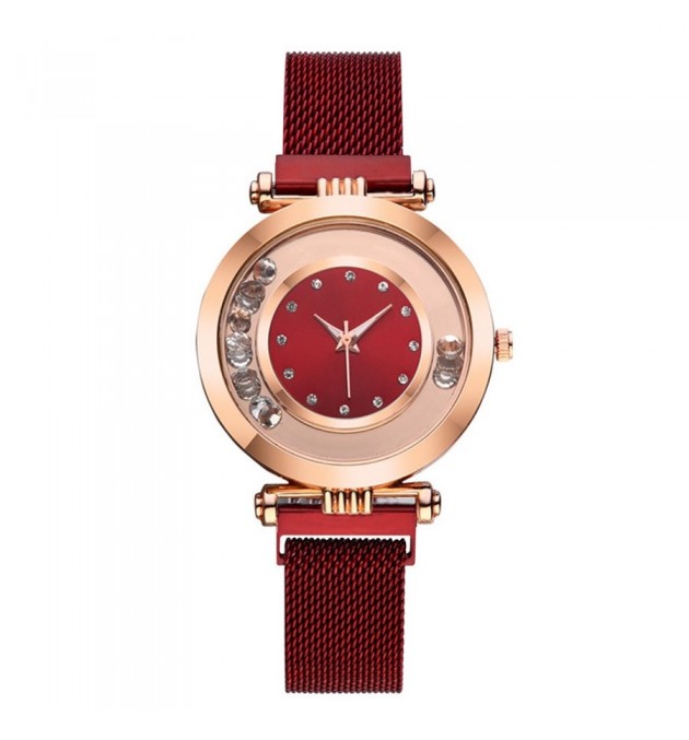 MONTRE NONAME BRACELET ROUGE CADRAN ROUGE ET OR ROSE AVEC OXYDE