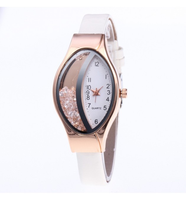 MONTRE NONAME OVALE BLANC CADRAN 2 COULEURS OR ROSE