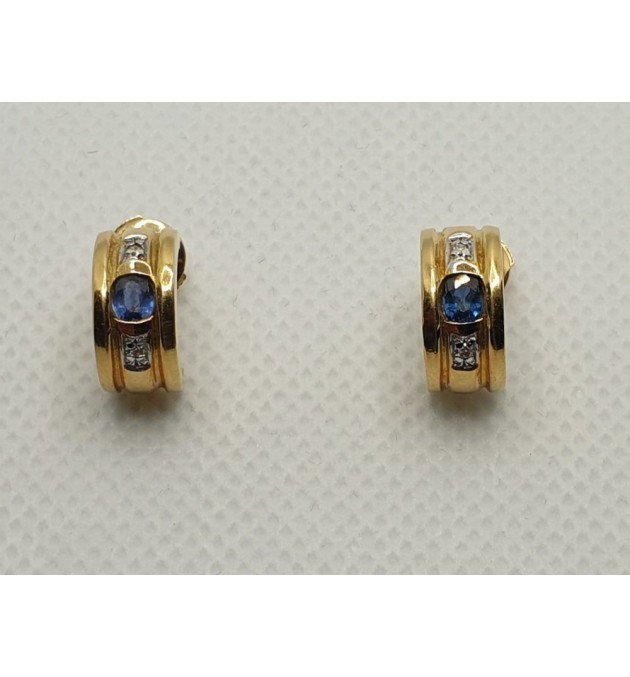 BOUCLES OREILLES DEMI-CREOLES OR 750/1000 SAPHIRS ET DIAMANTS