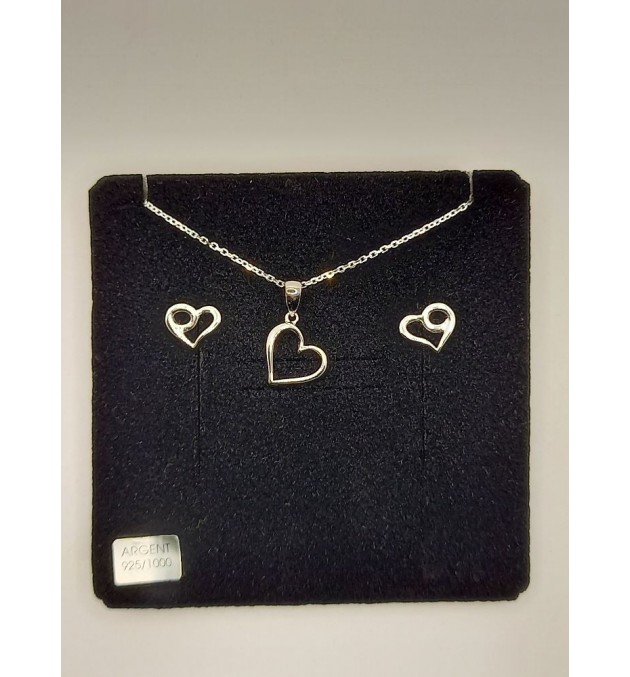 boucles d'oreilles et pendentifs coeur ajouré