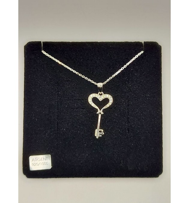 pendentif en argent 925 rhodié clé avec oxydes de zirconium