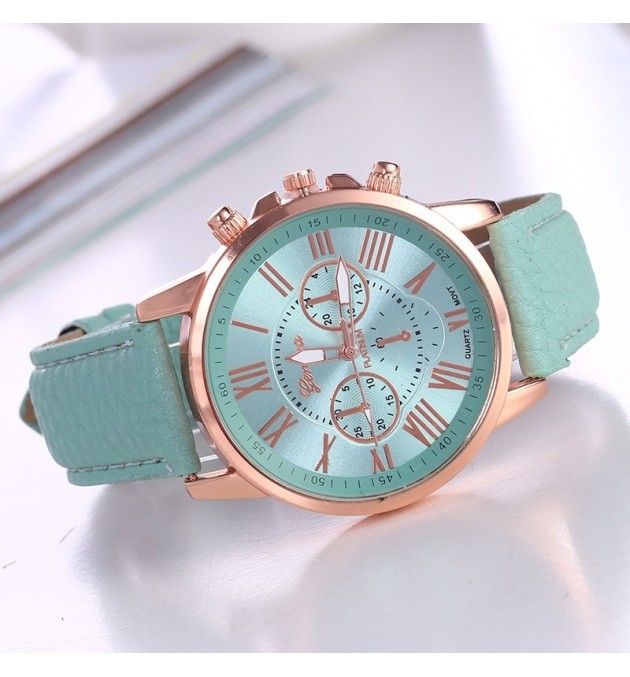 MONTRE GENEVA VERT CADRAN VERT CHIFFRE OR ROSE