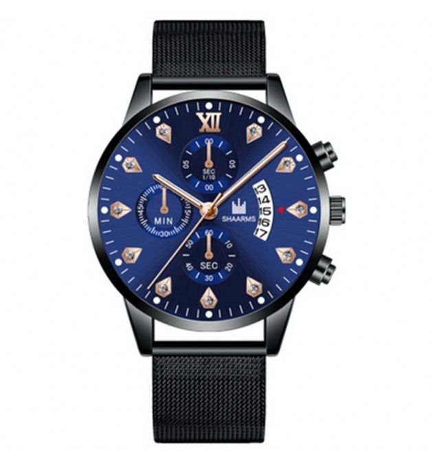 MONTRE SHAARMS NOIR ET BLEU OR ROSE AVEC DATE