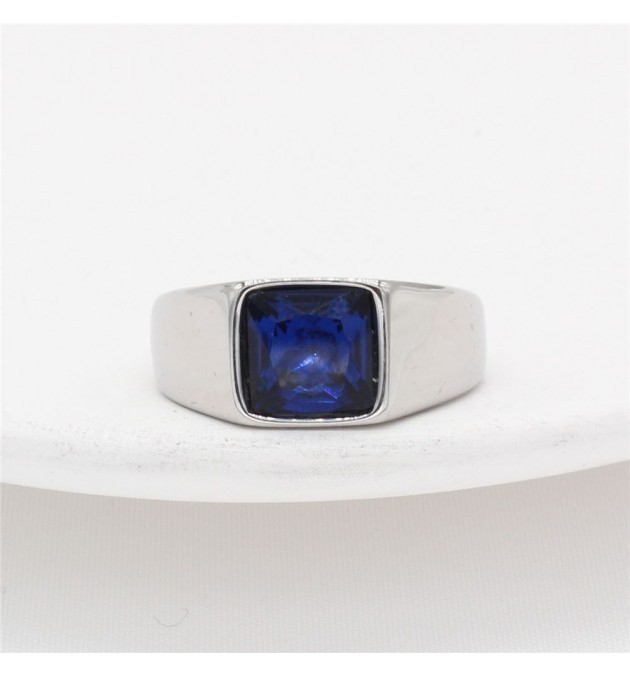 BAGUE ACIER PIERRE CARRE BLEU TAILLE 62