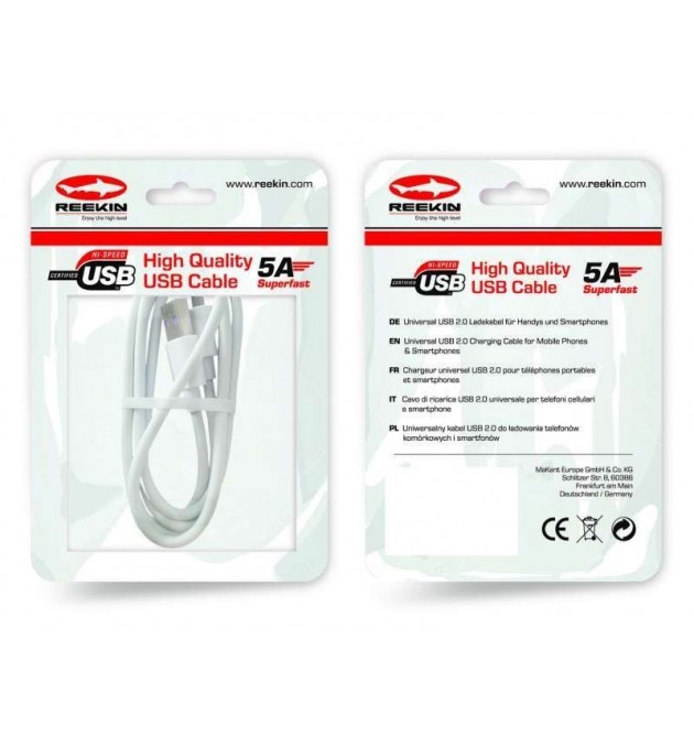 CABLE TYPE C 1M REEKIN 5A SUPERFAST NYLON BLANC