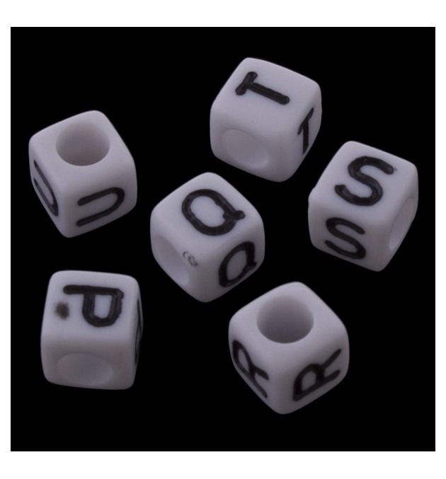 Perles acrylique alphabet, cube, modèles avec le motif de lettre blanc, 10x10mm, Trou:Environ 3mm