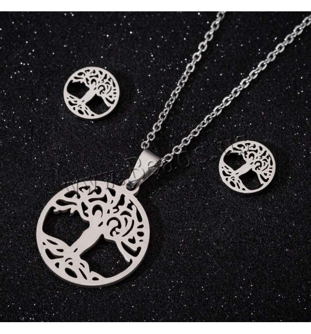 COFFRET COLLIER ARBRE DE VIE AVEC BOUCLE D OREILLE ACIER