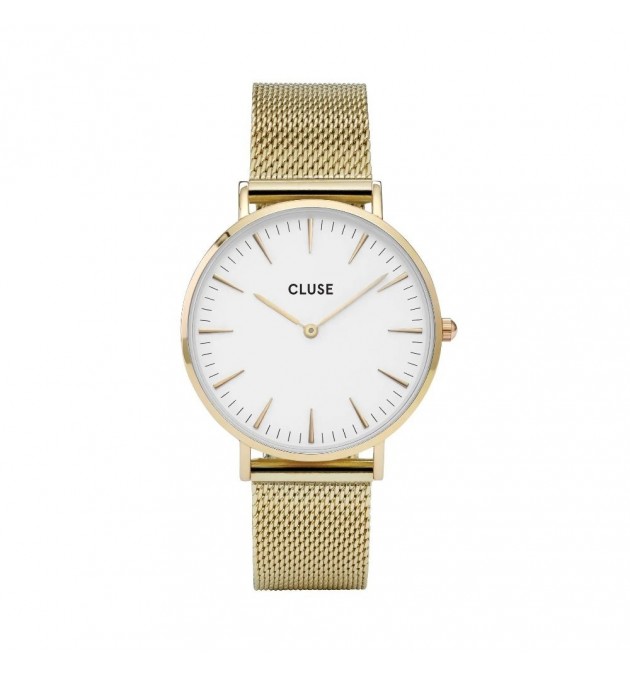 Montre Cluse Boho Chic Petite Acier Dore Ronde Quartz 28mm Fond Blanc Bracelet Acier Dore