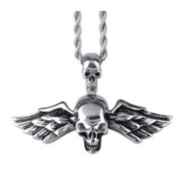 PENDENTIF ACIER TETE DE MORT AVEC AILES