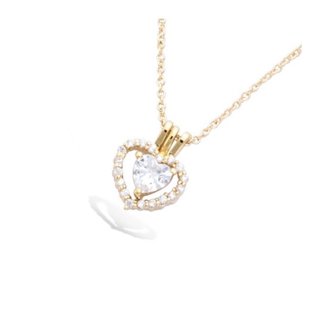 PENDENTIF EN PLAQUE OR COEUR EVIDE AVEC OXYDES ET SOLITAIRE