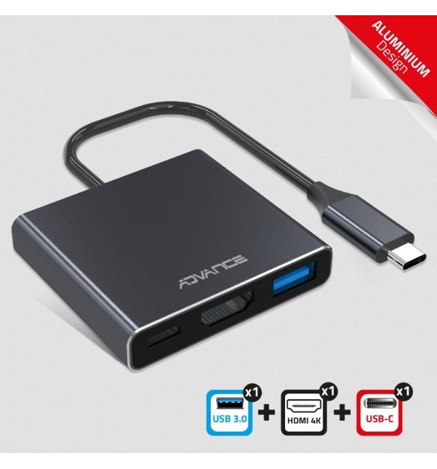 HUB ALU 3 EN 1 XPAND SMART ADVANCE HUB-C3IN1 USB-C VERS USB 3.0 / USB-C / HDMI