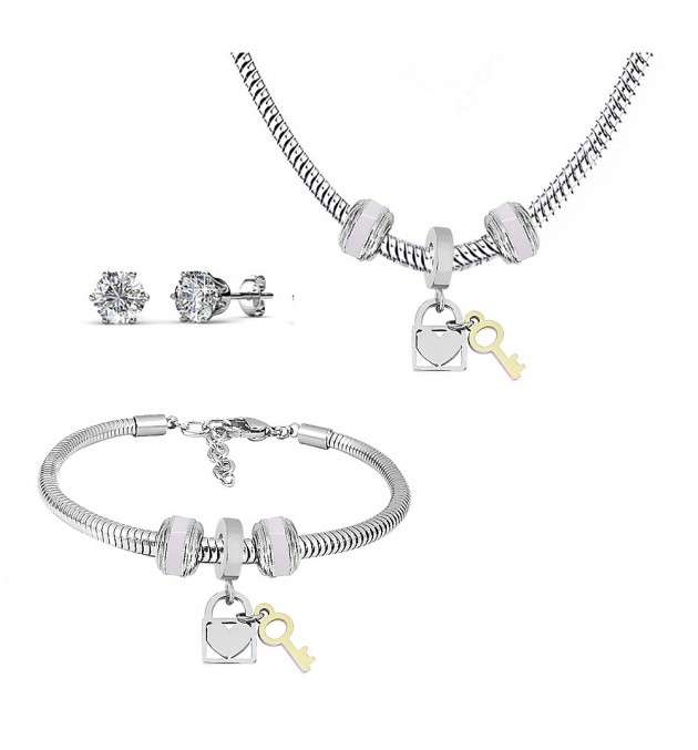 COLLIER CLE ET COEUR AVEC BRACELET ET CLOU OXYDE