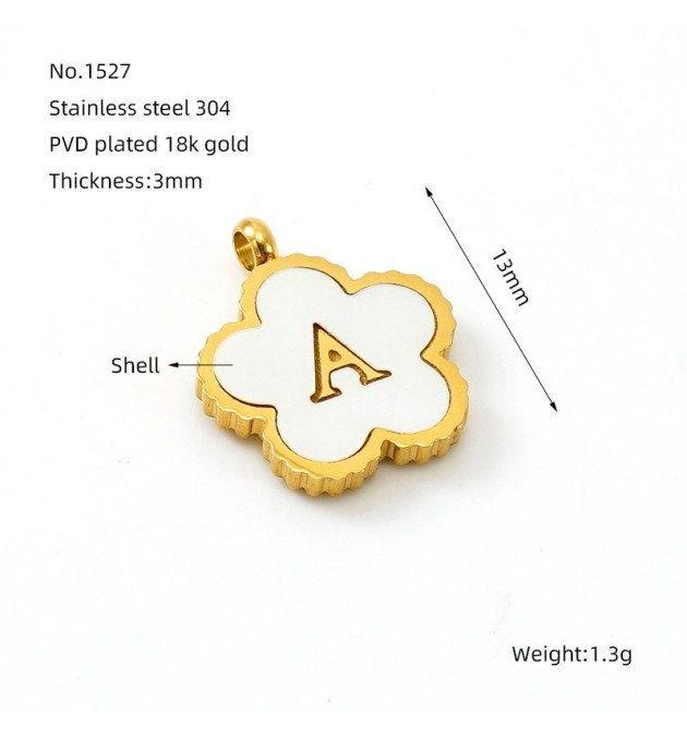 PENDENTIF ACIER FLEUR LETTRE A METAL DORE