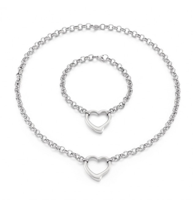 COLLIER GROSSE MAILLE COEUR AVEC BRACELET ACIER