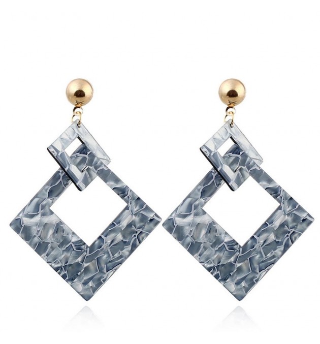 BOUCLE D OREILLE ACIER DORE CARRE LEOPARD BLEU
