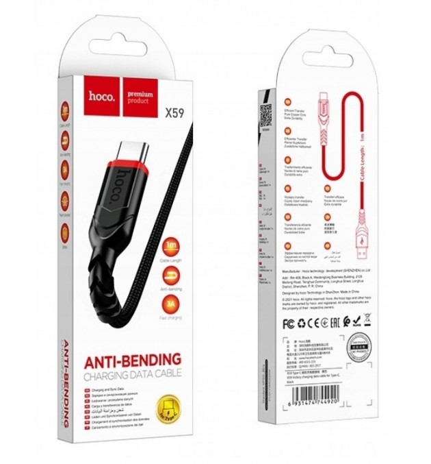 CABLE VICTORY HOCO USB TYPE C X59 1M NOIR