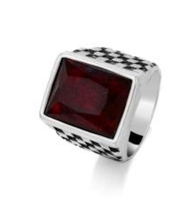 BAGUE ACIER DAMIER PIERRE ROUGE TAILLE 62