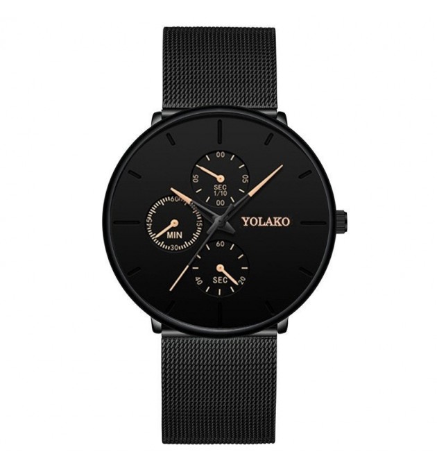MONTRE YOLAKO NOIR ET OR ROSE
