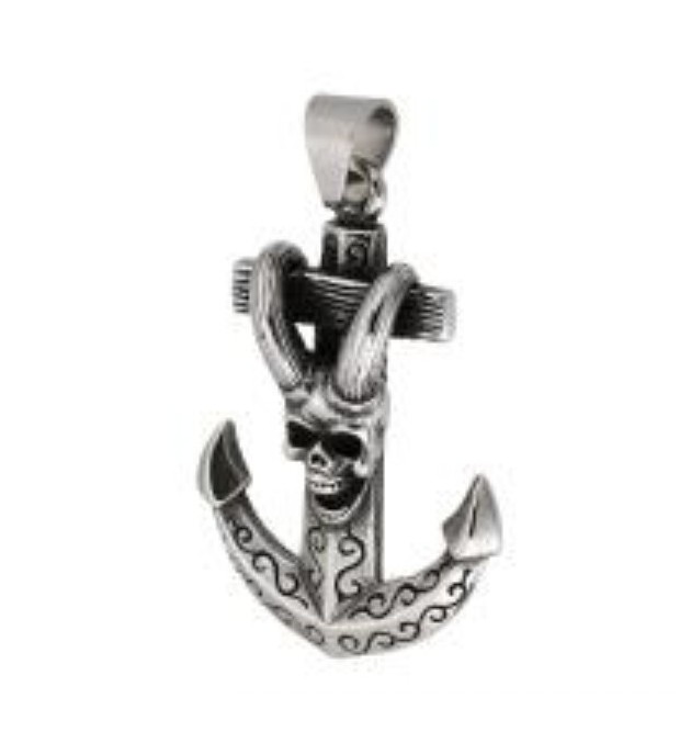 PENDENTIF ACIER CROIX ANCRE TETE DE MORT