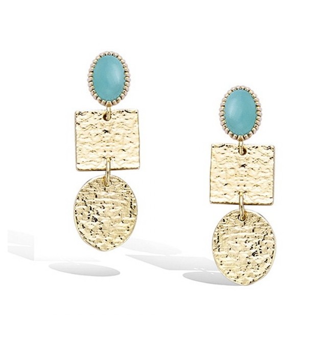 BOUCLE DOREILLES EN PLAQUE OR PENDANTE GEOMETRIQUE