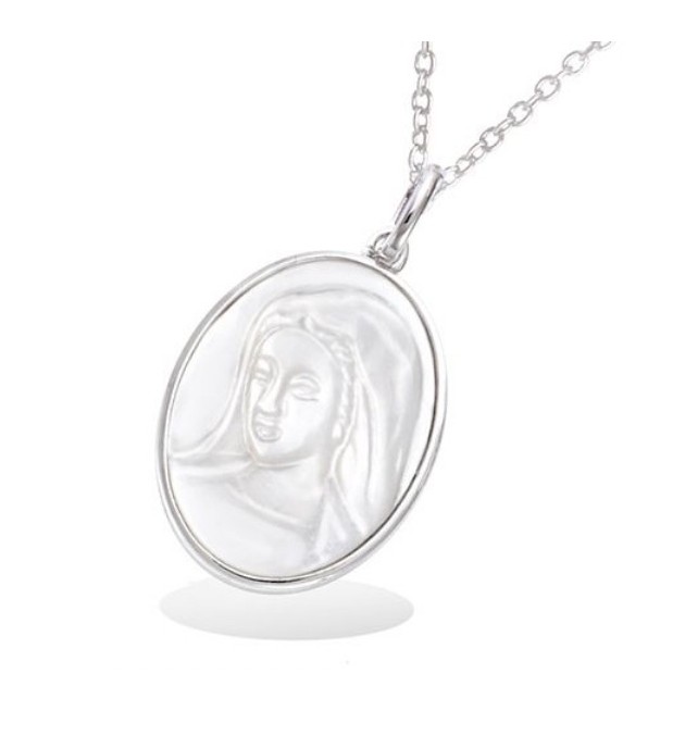 PENDENTIF EN ARGENT 925 RHODIE NACRE MOTIF VIERGE MARIE