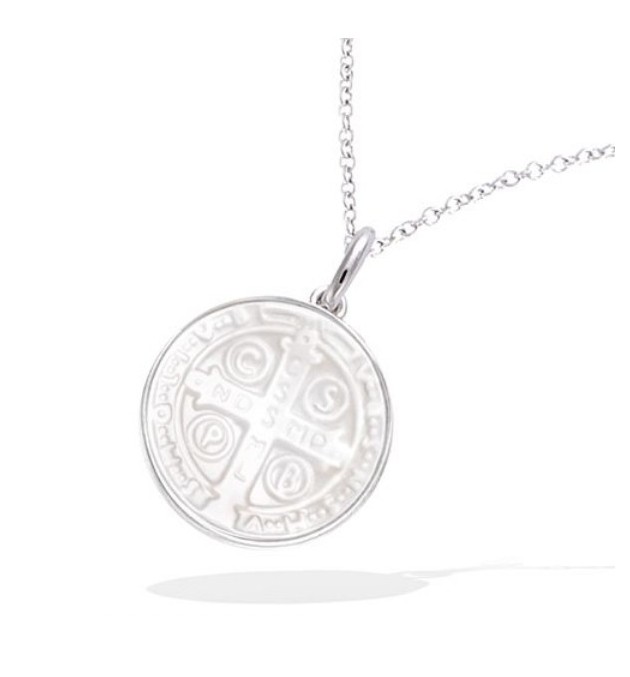 PENDENTIF EN ARGENT MASSIF 925 RHODIE NACRE MOTIF CROIX DE SAINT BENOIT
