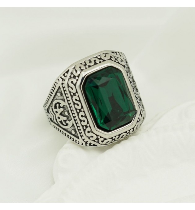 BAGUE ACIER ZIGZAG PIERRE VERT TAILLE 70