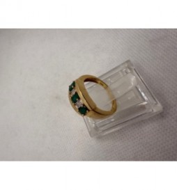 BAGUE OR 750/1000 3 EMERAUDES 4 DIAMANTS 4GRS TAILLE 54