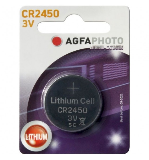 La pile bouton lithium CR2450 de Agfa Photo a une tension nominale de 3v et une capacité de 600 mAh.