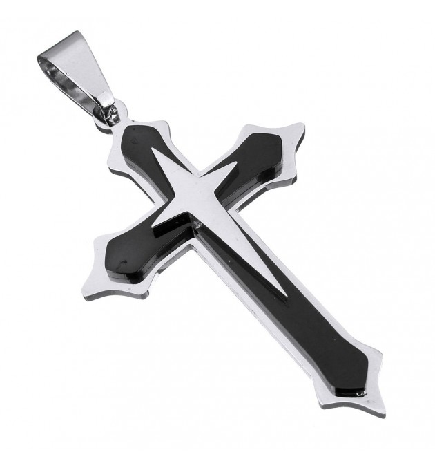PENDENTIF CROIX ACIER ET NOIR 4.5X3.CM