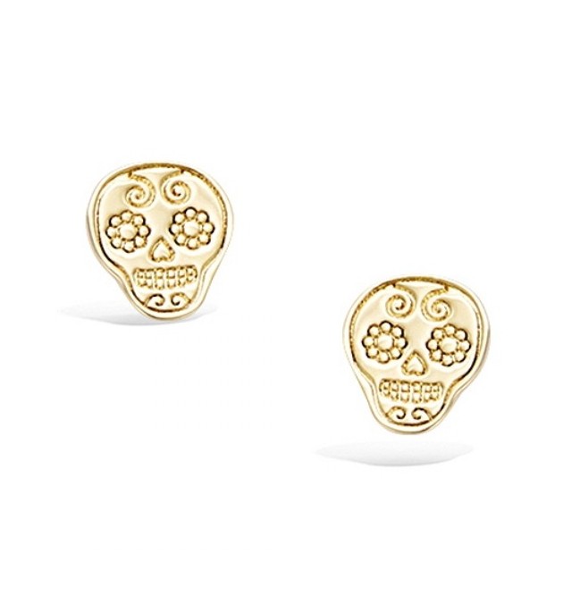 BOUCLE DOREILLES EN PLAQUE OR TETE DE MORT