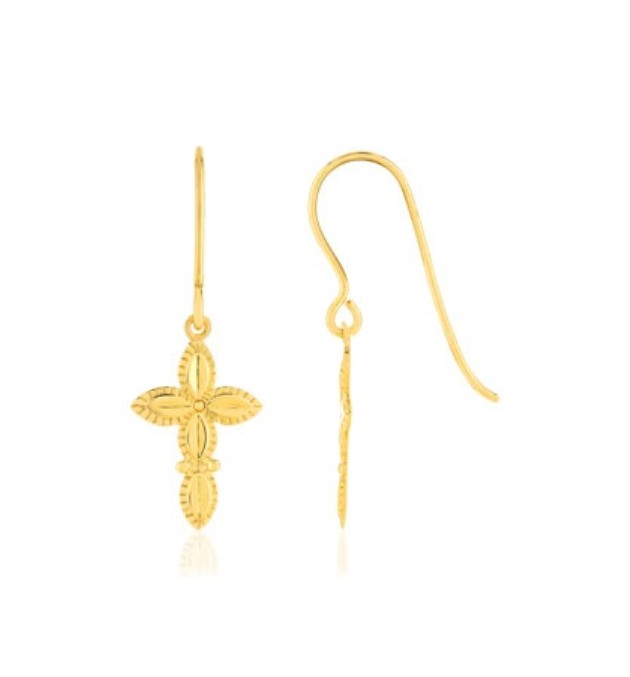 BOUCLE DOREILLE PLAQUE OR PENDANT CROIX