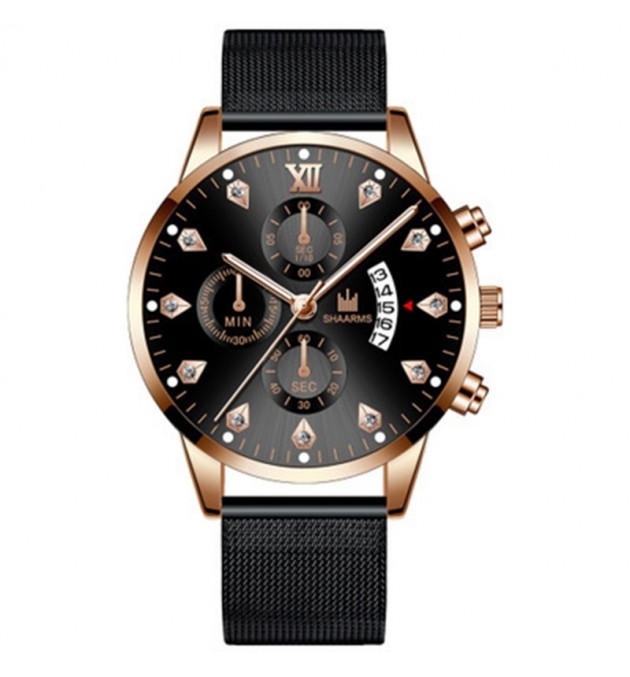 MONTRE SHAARMS NOIR ET OR ROSE AVEC DATE